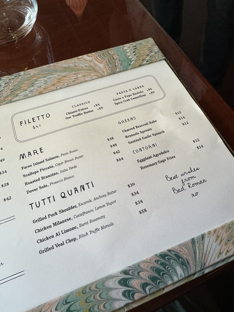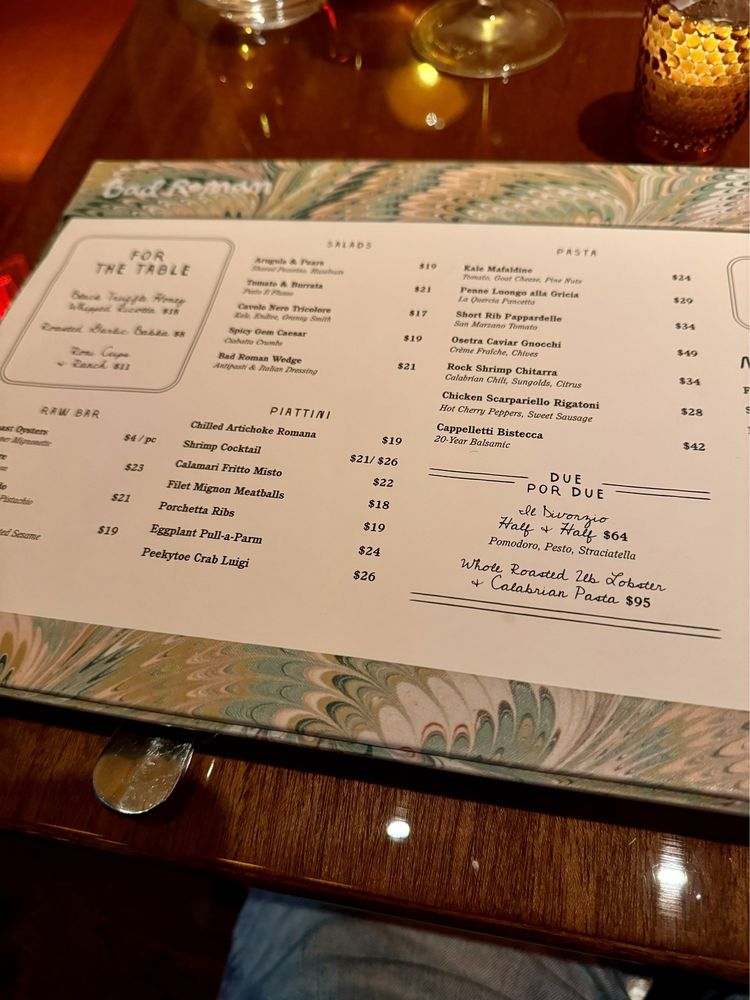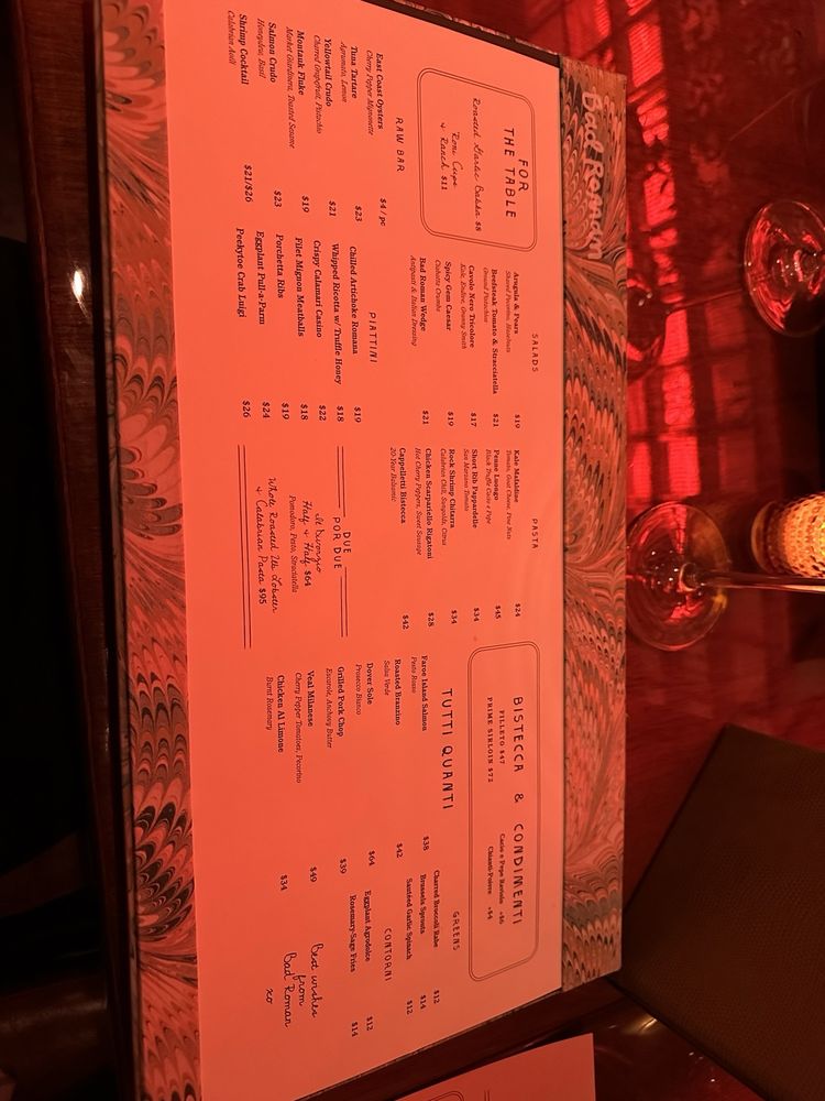 Introducing the menu at Bad Roman, a trendy and upscale Italian restaurant located in New York City, where reservations are recommended due to its popularity. With a diverse range of vegan options and limited vegetarian choices, this restaurant offers a unique dining experience. The atmosphere is described as romantic and private, with covered outdoor seating available.